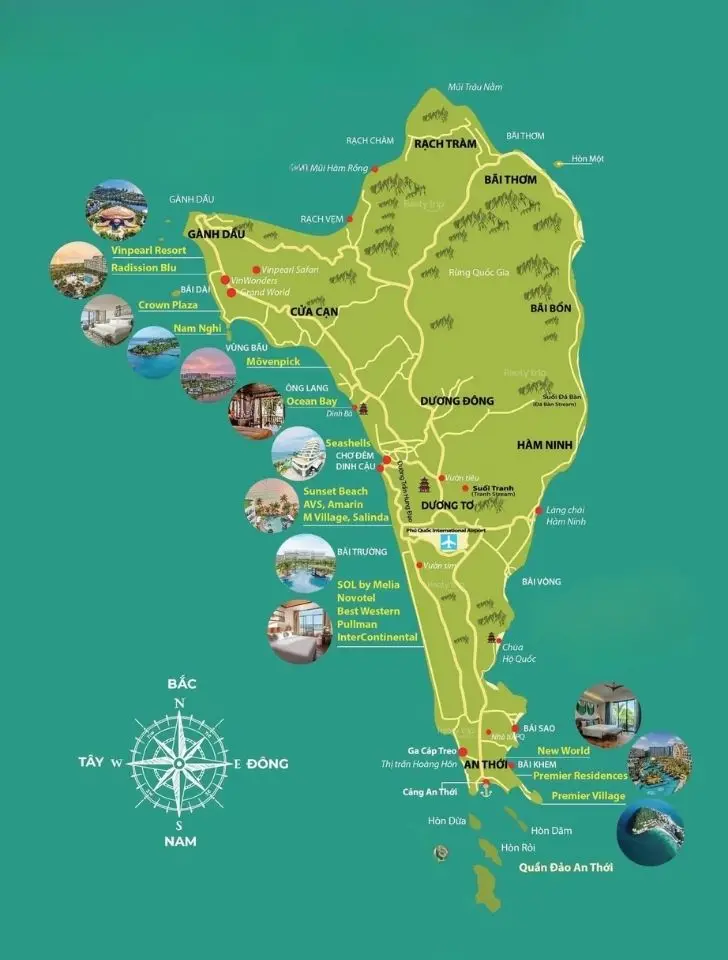 Bản đồ du lịch Phú Quốc ở phía Nam đảo