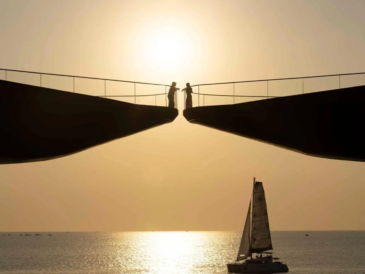 Một điểm độc đáo tại Cầu Hôn là khoảng cách 50cm giữa hai đầu cầu, nơi được tô điểm bởi ánh hoàng hôn từ ngày 24/12 đến 01/01. Khoảng trống này tượng trưng cho cảm xúc hồi hộp trước khi một nụ hôn được trao đi, cũng như những cái bắt tay thể hiện tình bạn thương mến.