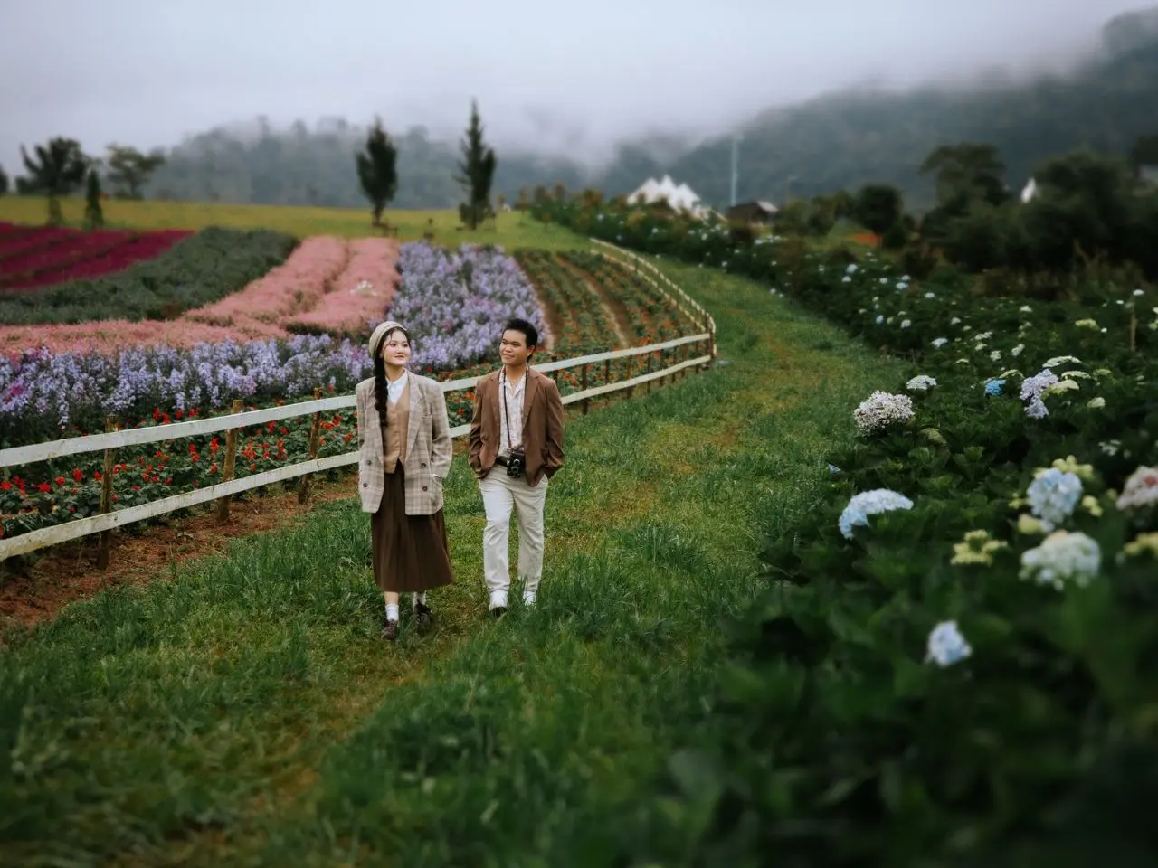 Đồi Mây là một trong những địa điểm săn mây đẹp và dễ đi tại Đà Lạt, đặc biệt lý tưởng vào những ngày đầu năm. Từ đây, bạn có thể ngắm bình minh bồng bềnh mây trắng hoặc hoàng hôn dịu nhẹ giữa không gian thiên nhiên thoáng đãng. Xen kẽ là những cánh đồng hoa hồng, hoa cẩm tú cầu tạo nên background rất “ăn ảnh”, phù hợp cho bộ ảnh check in Tết Đà Lạt mang vibe nhẹ nhàng, trong trẻo.