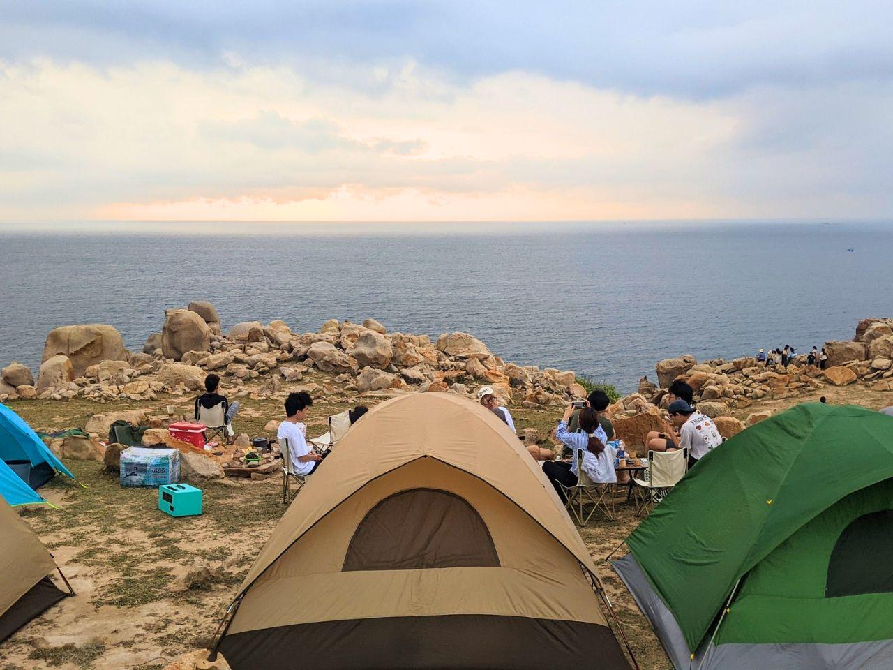Tại Công Viên Đá Công viên đá Ninh Thuận cũng là một địa điểm lý tưởng để cắm trại. Sau chuyến trekking đầy mệt mỏi, bạn có thể dựng lều ngay trên những bãi cát gần biển, nơi ngắm nhìn cảnh hoàng hôn tuyệt đẹp và thưởng thức không khí mát mẻ, trong lành. Lắng nghe tiếng sóng vỗ, hít thở bầu không khí biển cả, và cùng bạn bè nướng đồ ăn, trò chuyện sẽ là những khoảnh khắc tuyệt vời và khó quên. Không gian yên tĩnh, hoang sơ của công viên đá Ninh Thuận sẽ giúp bạn thư giãn và lấy lại năng lượng sau những ngày khám phá thiên nhiên kỳ vĩ của nơi đây.