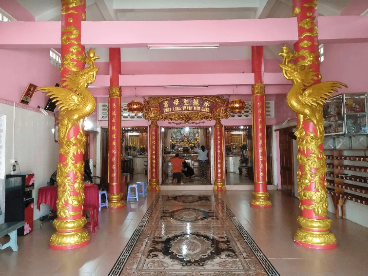 - Chính điện: Là nơi thờ cúng Thủy Long Thánh Mẫu, là trung tâm của Dinh Bà, nơi có bàn thờ được trang trí một cách trang trọng và tượng Thánh Mẫu được đặt ở vị trí cao nhất.