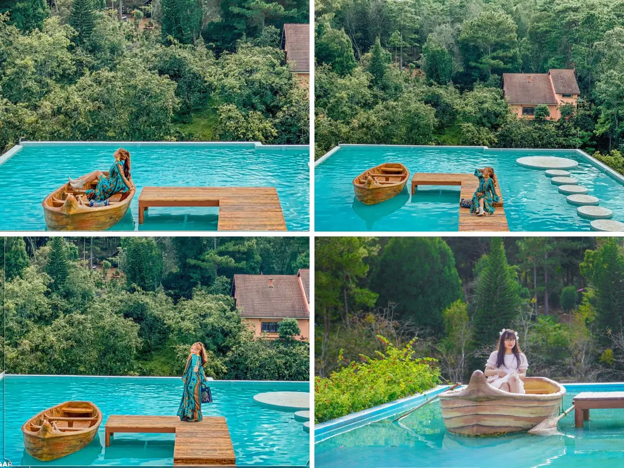 Ẩn mình giữa rừng thông bạt ngàn, hồ vô cực tại Fresh Garden là điểm dừng chân yêu thích của du khách. Mặt hồ phẳng lặng như tấm gương khổng lồ phản chiếu mây trời, tạo cảm giác mênh mang vô tận. Vào buổi sáng sớm, sương mờ giăng phủ, khung cảnh nơi đây càng thêm huyền ảo – lý tưởng để chụp ảnh hoặc tận hưởng không khí bình yên đặc trưng của Đà Lạt.