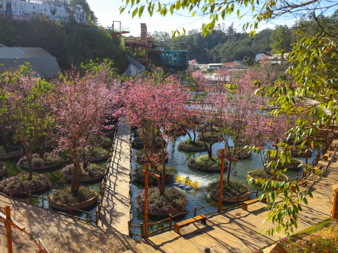 Vào mùa xuân (tháng 1 – tháng 3), Fresh Garden Đà Lạt lại khoác lên mình tấm áo hồng rực rỡ của Mai Anh Đào. Cả thung lũng bừng nở, tạo nên khung cảnh thơ mộng tựa như xứ sở Nhật Bản thu nhỏ. Dạo bước giữa không gian ngập sắc hoa, bạn sẽ cảm nhận trọn vẹn vẻ đẹp tinh khôi của đất trời Đà Lạt trong những ngày đầu năm.