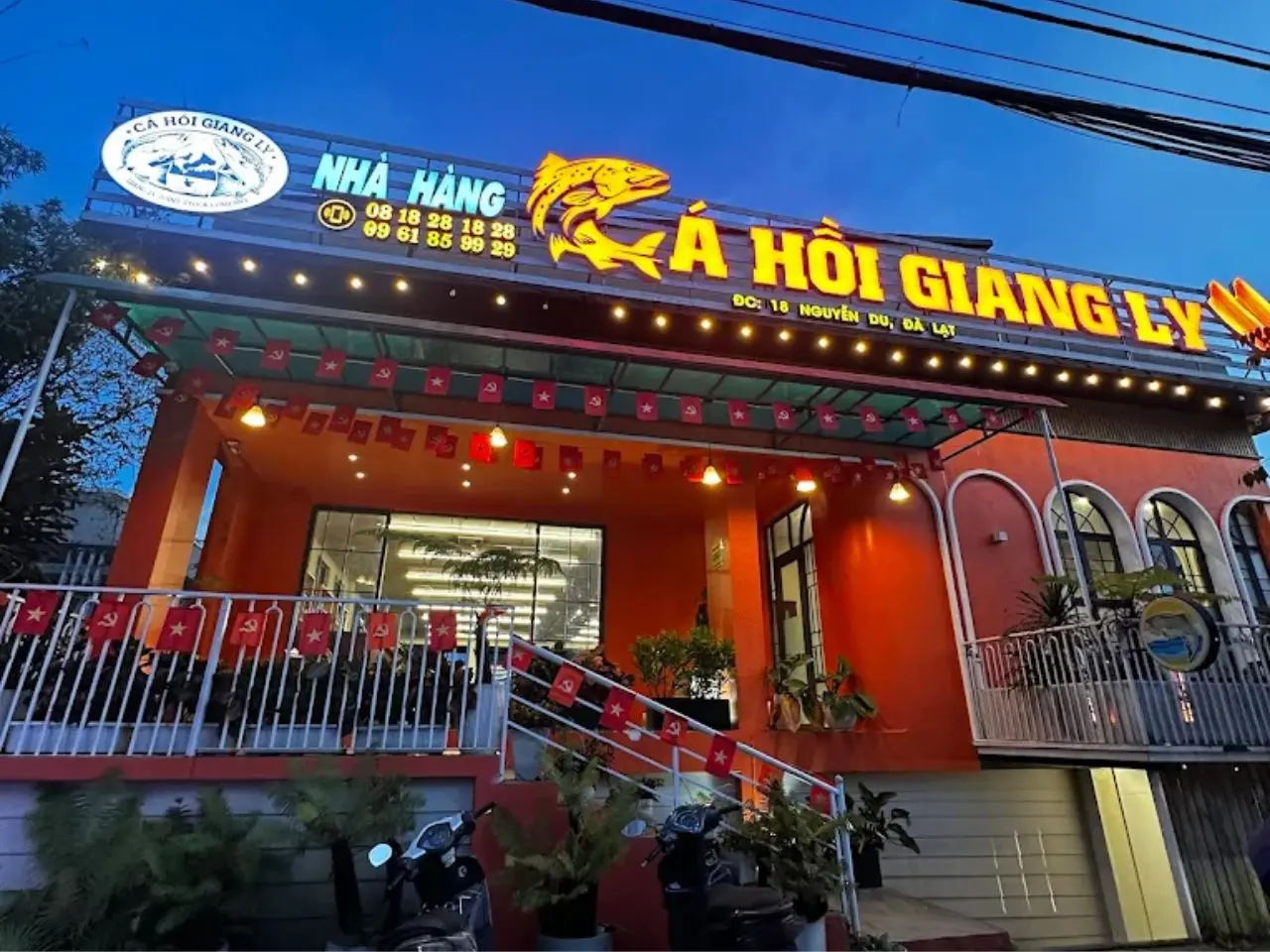 Nhà hàng Cá Hồi Giang Ly là địa chỉ quen thuộc với các đoàn khách yêu thích ẩm thực cá hồi, cá tầm tươi sống tại Đà Lạt. Nhà hàng sở hữu bể cá ngay tại chỗ, đảm bảo nguyên liệu luôn tươi mới, chế biến theo nhiều hình thức như sashimi, lẩu, nướng, áp chảo. Vị trí gần trung tâm, xe du lịch lớn ra vào thuận tiện, phù hợp cho các đoàn khách sành ăn, khách công ty hoặc gia đình muốn trải nghiệm hải sản lạnh đúng chuẩn cao nguyên.