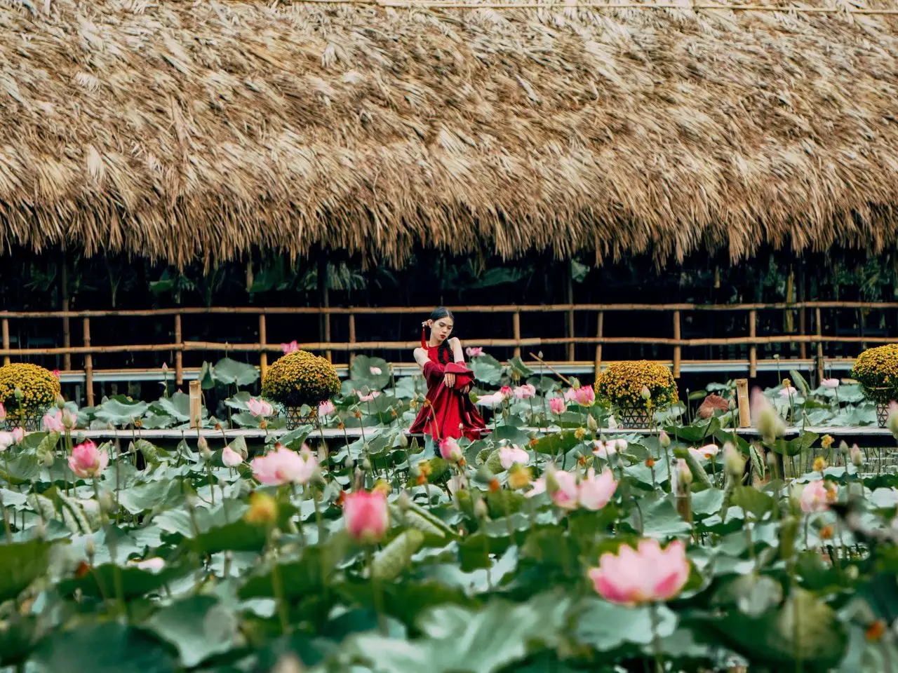 Hình ảnh du khách check in ở hồ sen tại Nha Trang Xưa