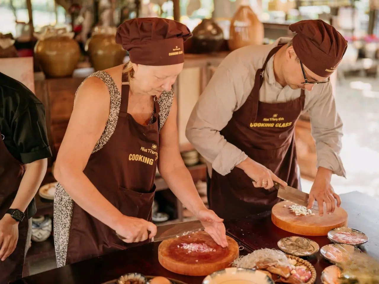Hình ảnh du khách trải nghiệm học nấu ăn tại Nha Trang Xưa