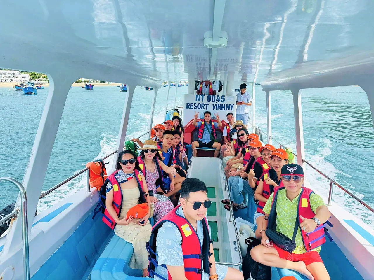 Sáng ngày cuối, đoàn trải nghiệm đi cano đáy kính để ngắm san hô rực rỡ cùng khung cảnh hùng vĩ của Vịnh Vĩnh Hy. Những điểm dừng chân như Hang Yến, Mũi Cá Heo, Hòn Rùa khiến cả đoàn không khỏi thích thú với cảnh đẹp nơi đây.