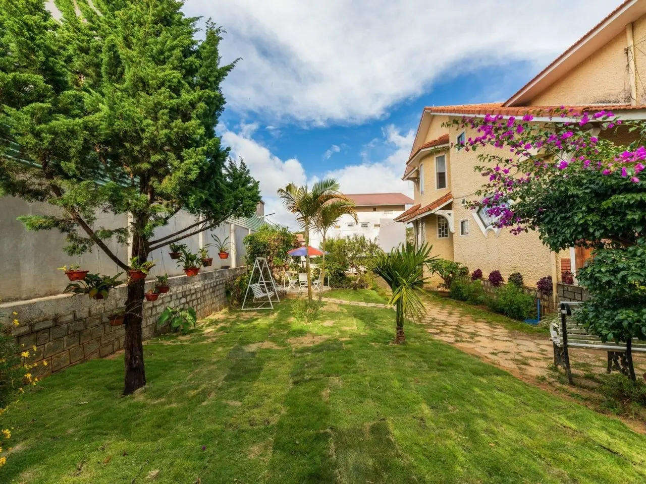 Nếu bạn yêu thích không gian vintage nhẹ nhàng, Villa Rose tại đường Mê Linh là lựa chọn hoàn hảo. Villa ẩn mình trong khu vườn hoa xanh mát, mang đến không gian nghỉ dưỡng bình yên cho nhóm 6-8 người. Villa có 3 phòng ngủ – 4 WC, phòng khách tràn ánh sáng tự nhiên, sân vườn rộng với nhiều loại hoa, khu BBQ và chỗ đỗ xe riêng.